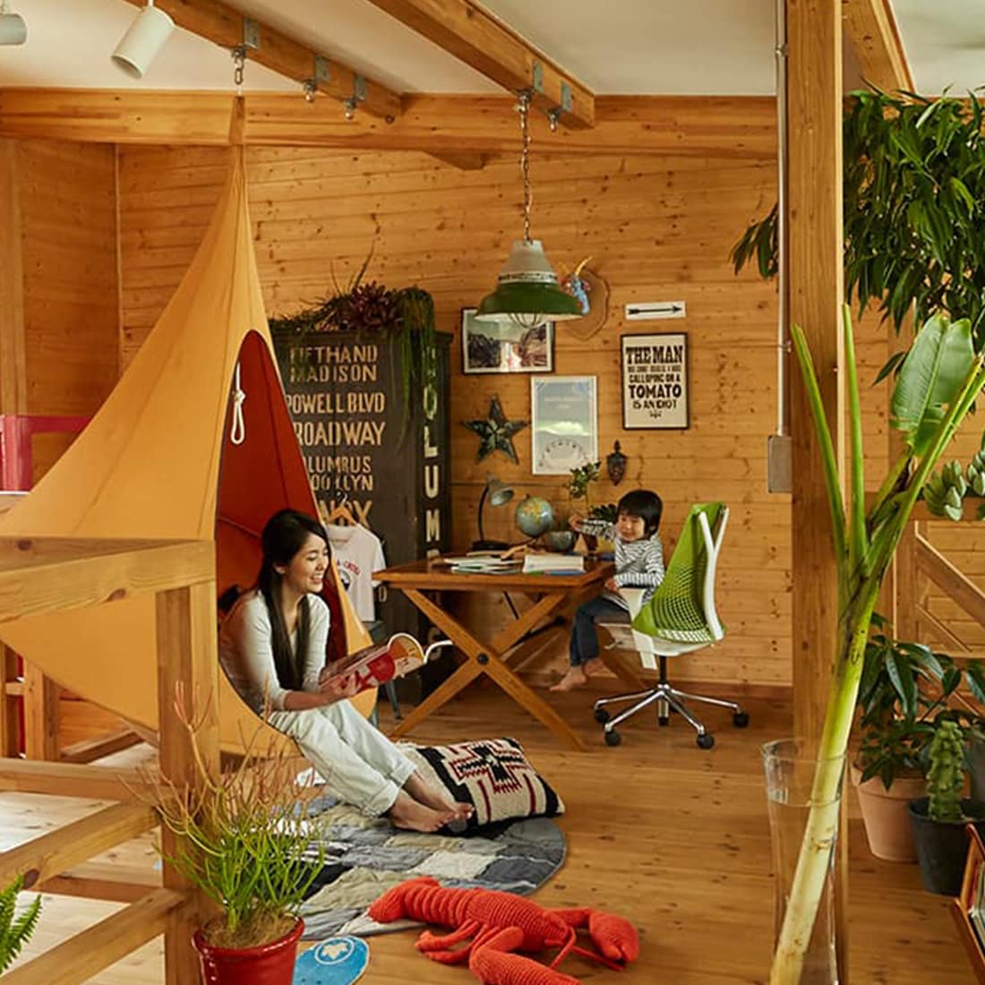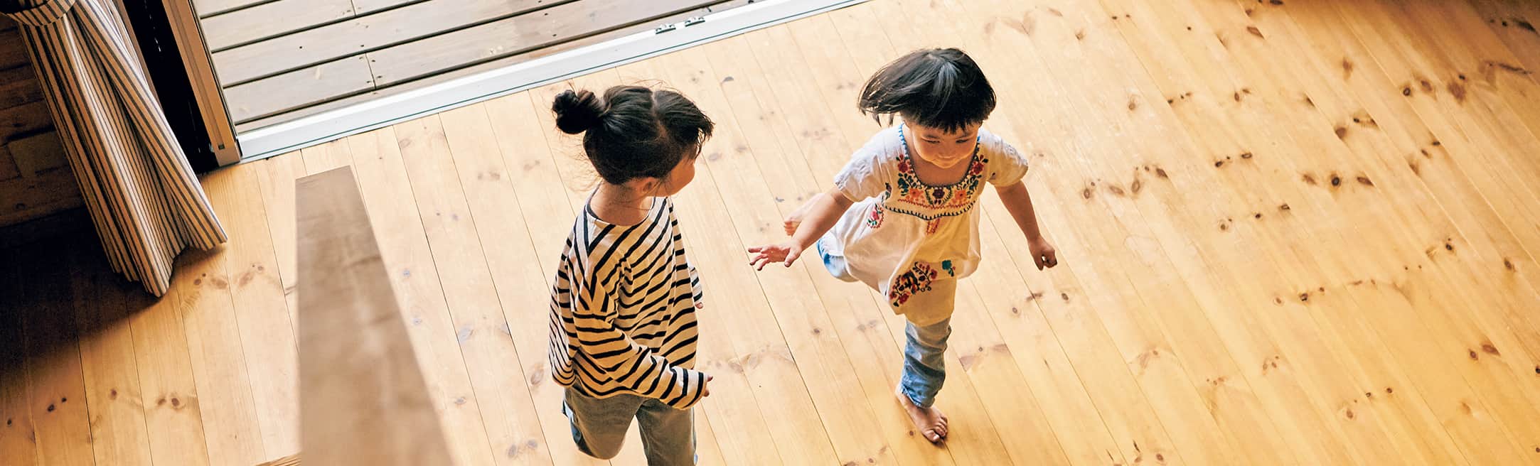 自然の木をふんだんにつかったBESSの家には、吹抜け、大きなウッドデッキ、