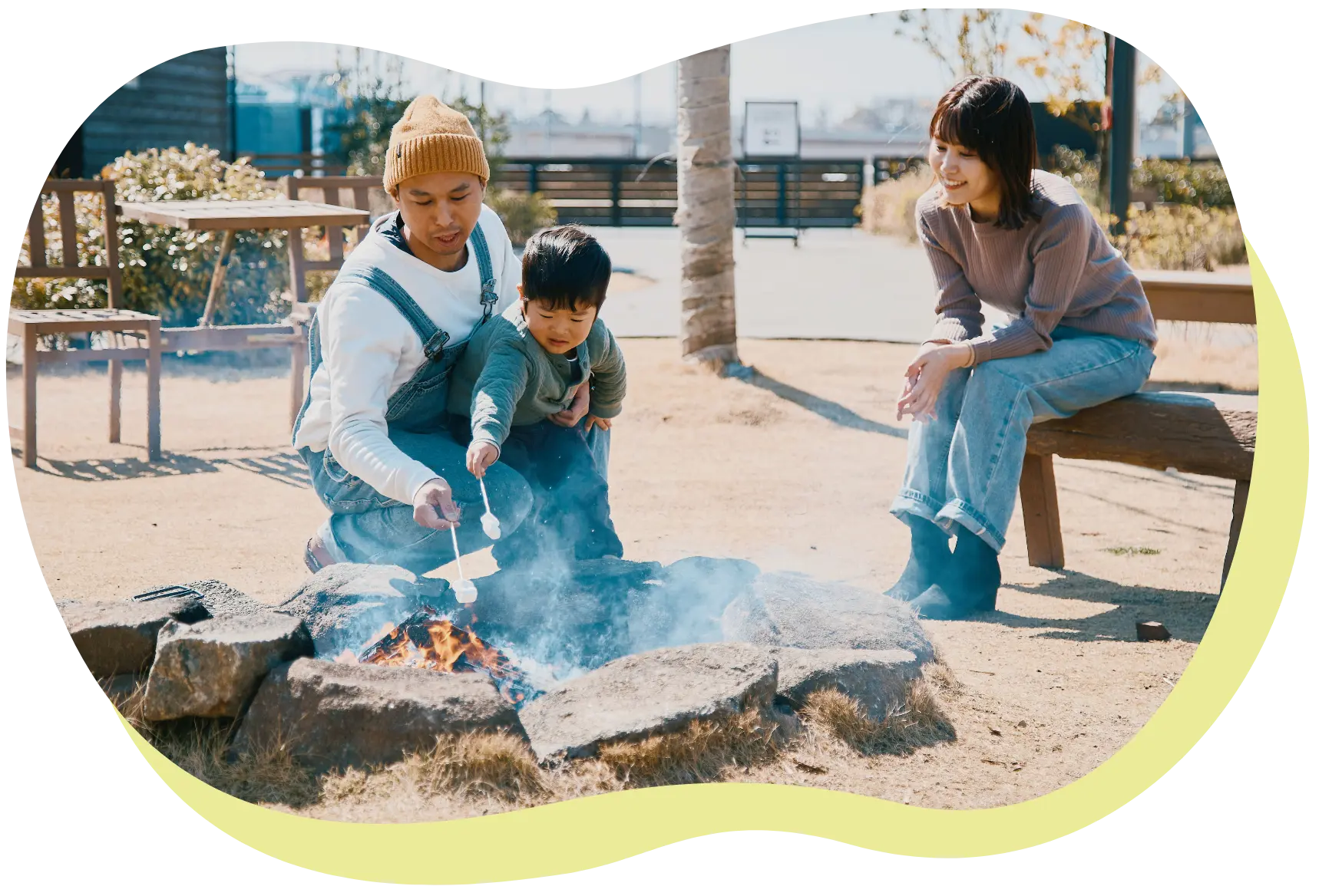 焚火をして焼きマシュマロを食べたり、